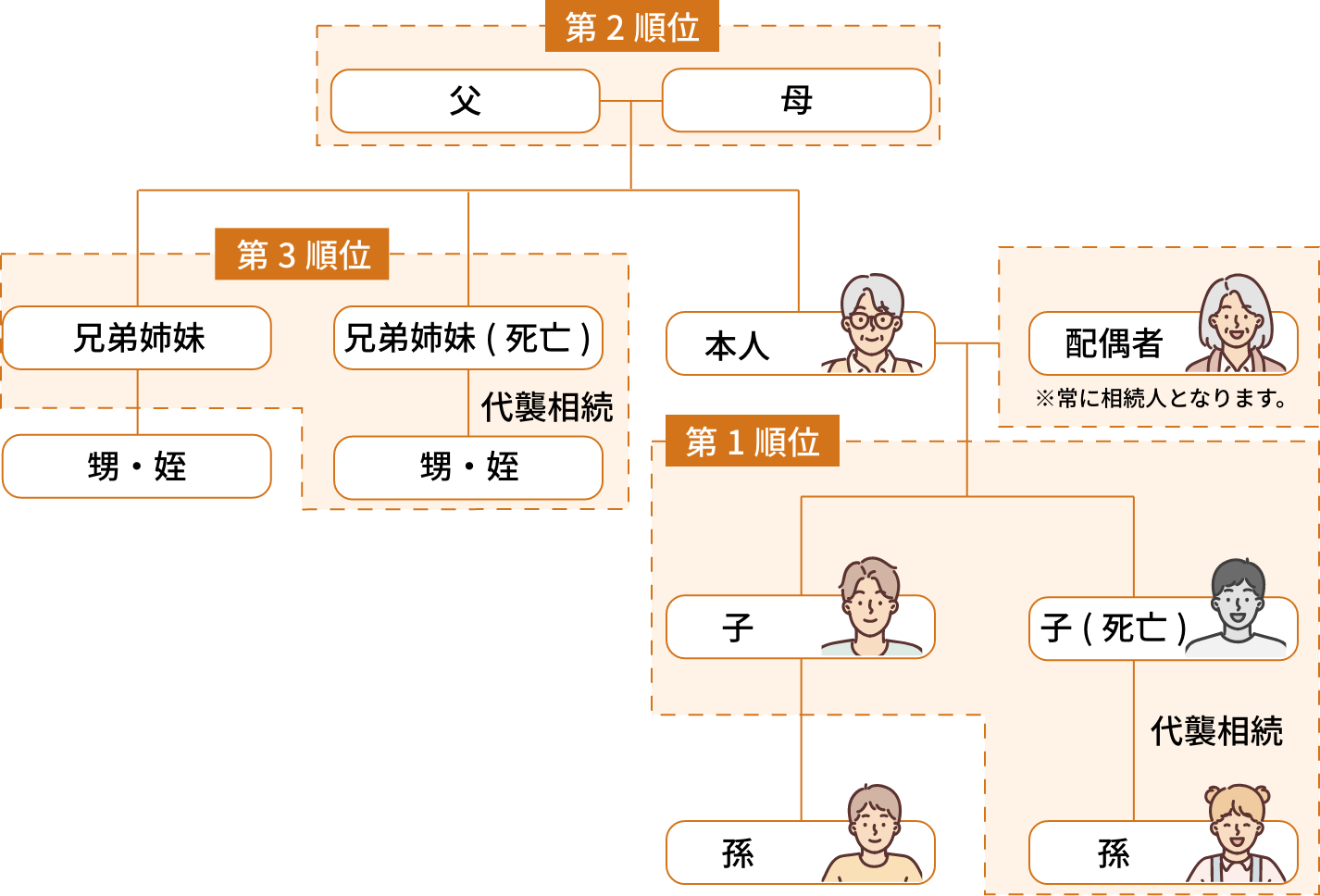 特に大変なのは、相続人の全員での話し合いと相続手続きです。万が一のときにどなたが相続人になるかは法律で決まっています。
