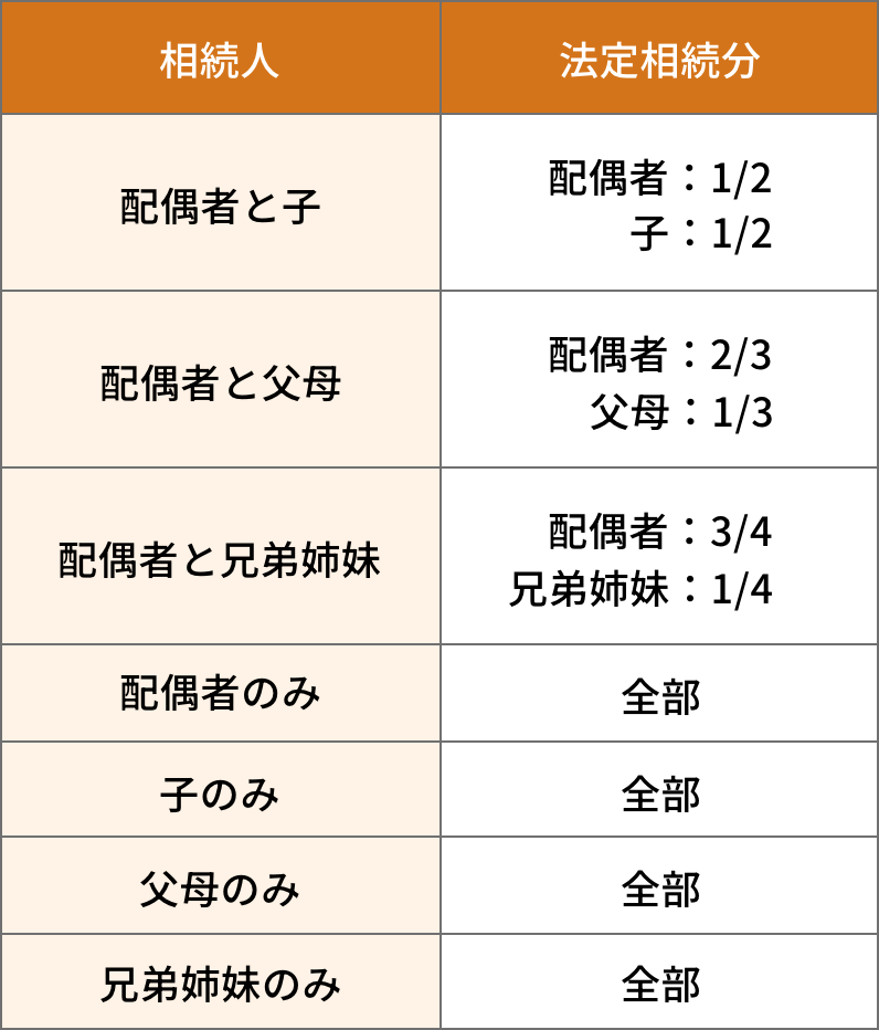 - なお、子・父母・兄弟姉妹がそれぞれ2人以上いるときは、原則として均等に分けます。