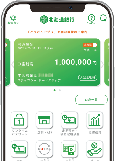 どうぎんアプリは普通預金キャッシュカードをお持ちの個人のお客さまがご利用できます。